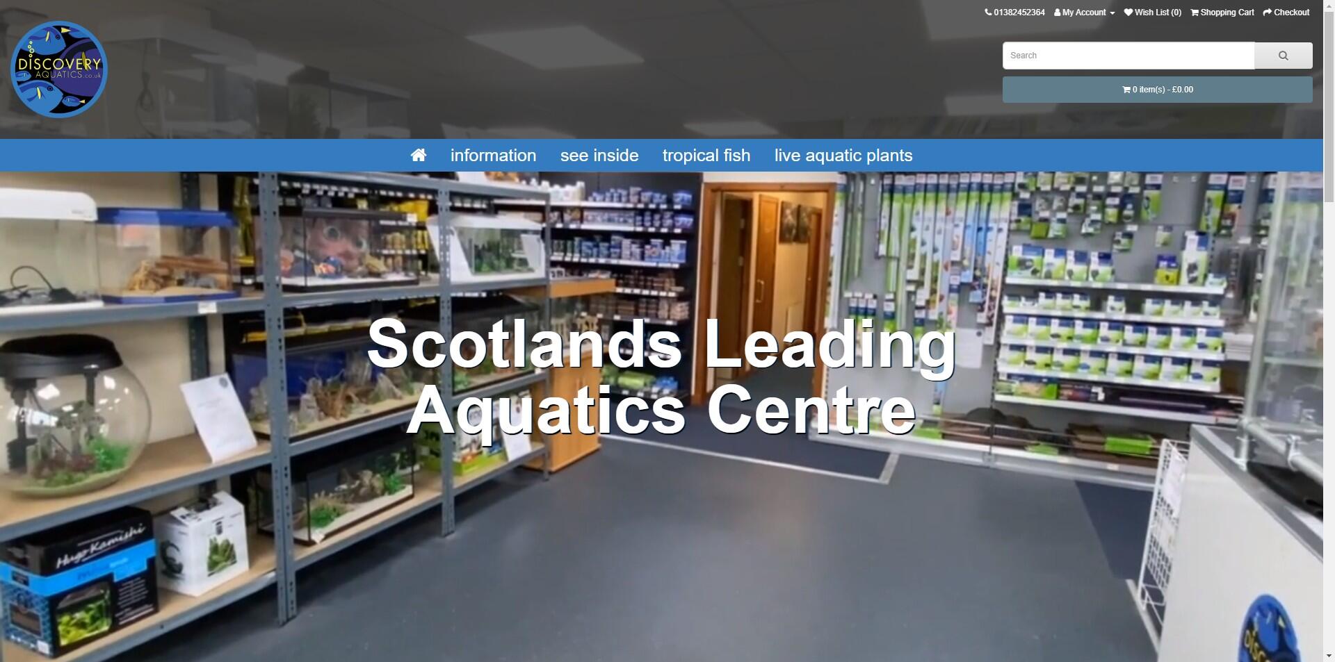 Custom Build of BluCMS for Discovery Aquatics in Dundee who are one of Scotlands largest independent suppliers of freshwater and saltwater aquarium supplies and fish stock. The Discovery site is built to show off Kris's Aquatics Centre with a specialist 3D virtual tour, responsive design, professional photography and a custom build of BluCMS which allows Kris to add his regular stock deliveries.